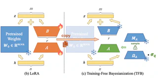 Estimating the uncertainty of responses of Large Language Models~(LLMs) remains a critical challenge. While recent Bayesian methods have demonstrated effectiveness in quantifying uncertainty through low-rank weight updates, they typically require complex fine-tuning or post-training procedures. In this paper, we propose Training-Free Bayesianization~(TFB), a novel framework that transforms existing off-the-shelf trained LoRA adapters into Bayesian ones without additional training. TFB systematically searches for the maximally acceptable level of variance in the weight posterior, constrained within a family of low-rank isotropic Gaussian distributions. We theoretically demonstrate that under mild conditions, this search process is equivalent to variational inference for the weights. Through comprehensive experiments, we show that TFB achieves superior uncertainty estimation and generalization compared to existing methods while eliminating the need for complex training procedures. Code will be available at this https URL.